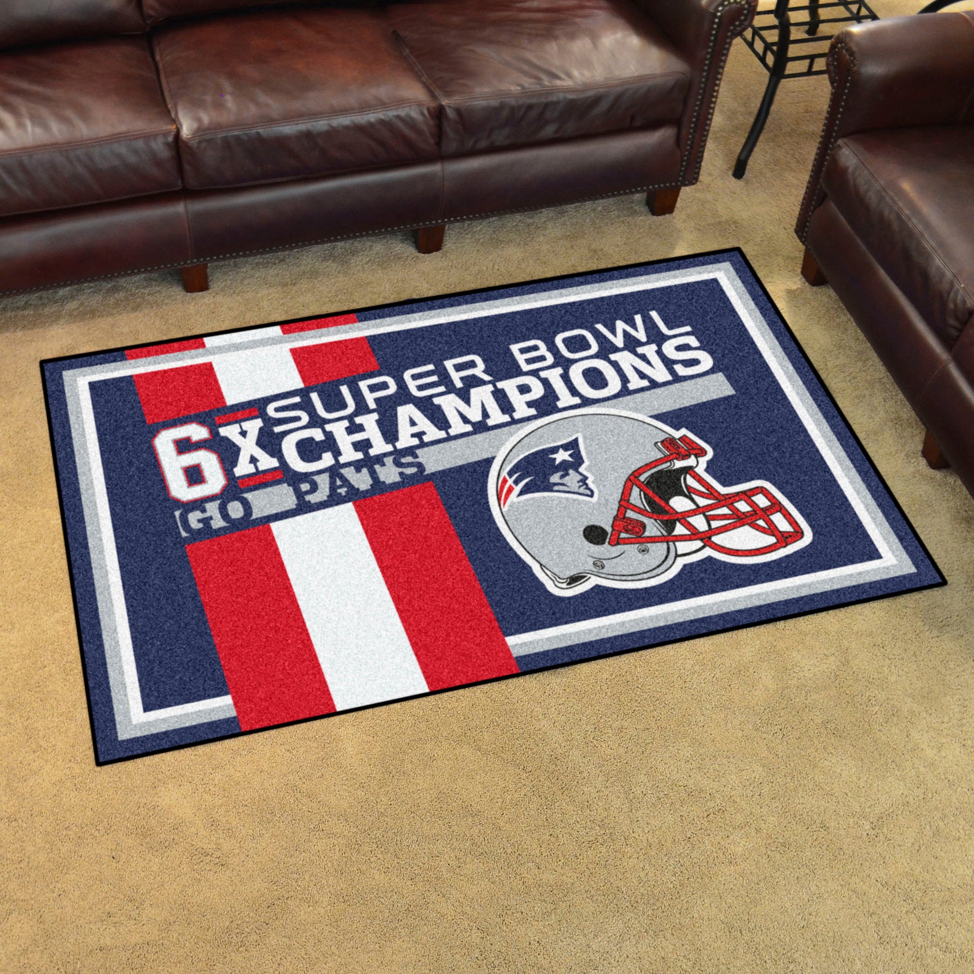 Honor the New England Patriots dynasty with this FANMATS Accent Rug with NFL Dynasty Design. This mat features your team's primary logo and championship years to display your pride in the home, office, man cave and more! It's the perfect accent piece or gift for any fan's room!