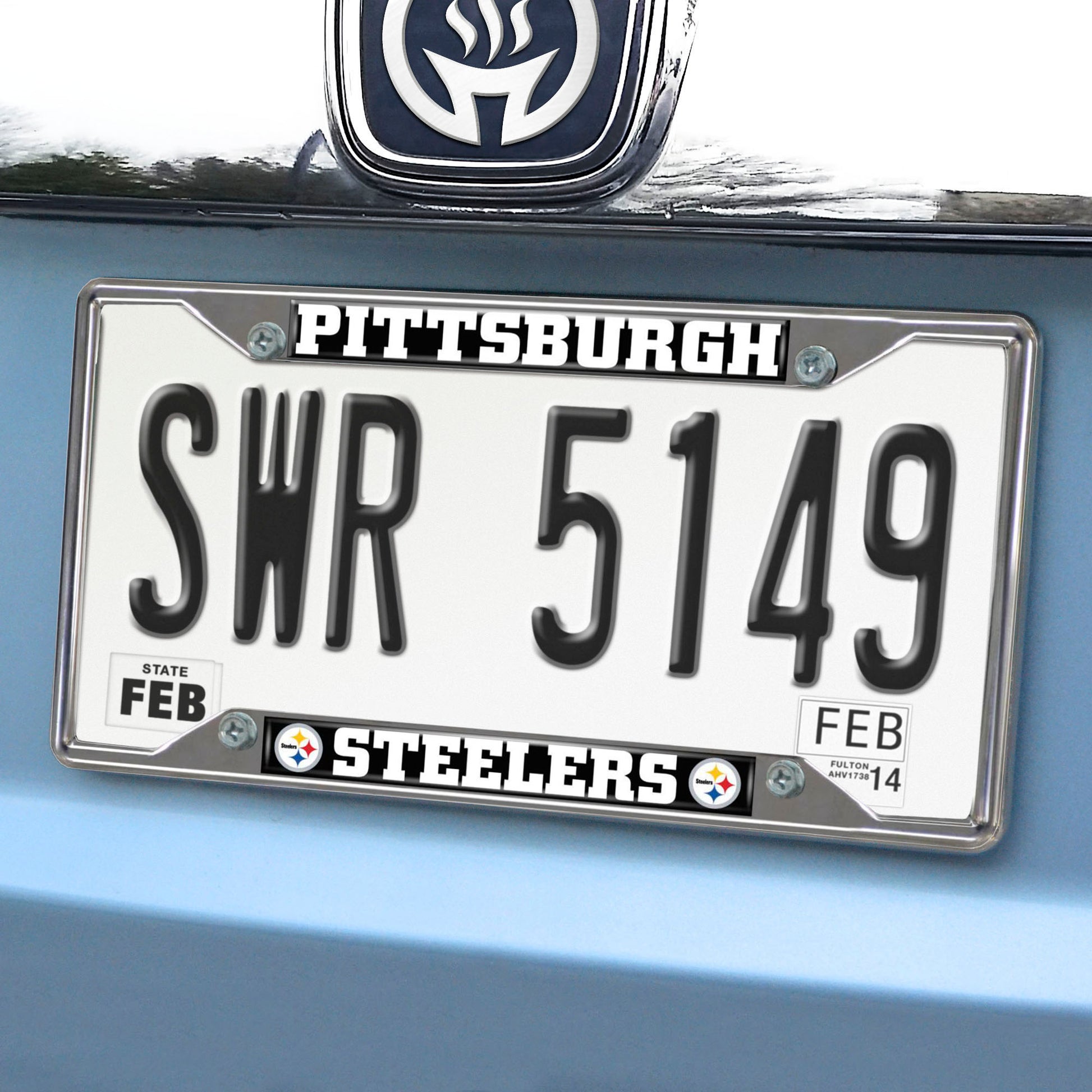 Pittsburgh Steelers Chrome Metal License Plate Frame, 6.25in x 12.25in .