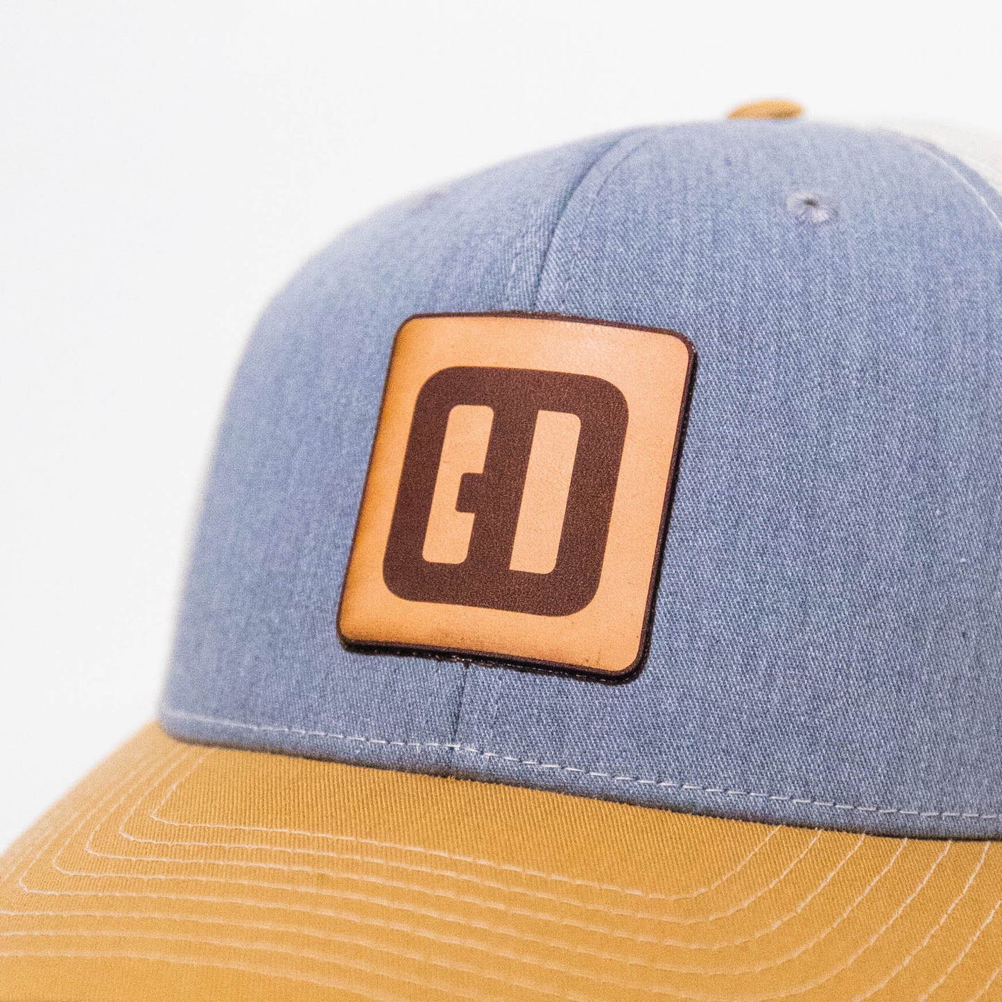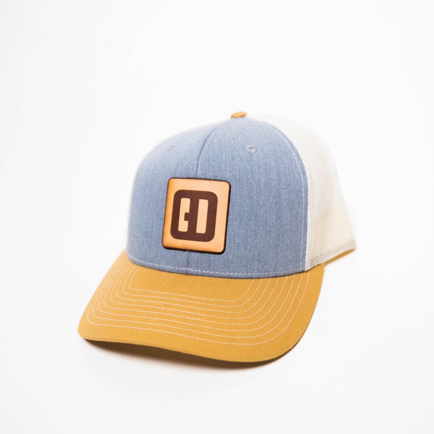 Be the trendsetter, but be prepared to answer a million questions about the logo. Simple. Stylish. Richardson 112 snapback in heather blue/gold/cream.